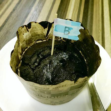 當天送的小熔岩巧克力蛋糕,但不愛巧克力的我們都沒吃完~